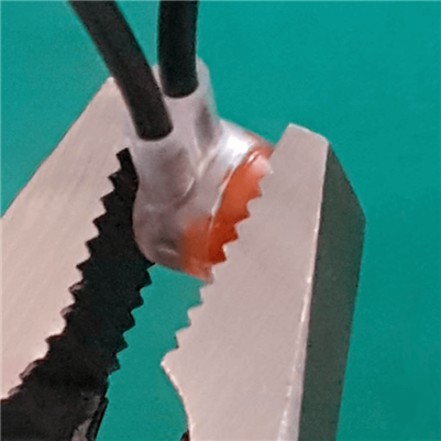 •  Use a pliers to squeeze both parts of the connector together.