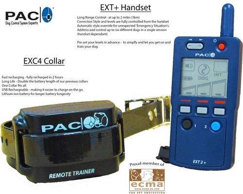 The New EXC7 Collar provides long-range control – at well over 1-mile range on ideal terrain. The EXC7 collar is compatible with the PAC nDXT and EXT+ dog training systems. IT COMES WITHOUT A CHARGER.